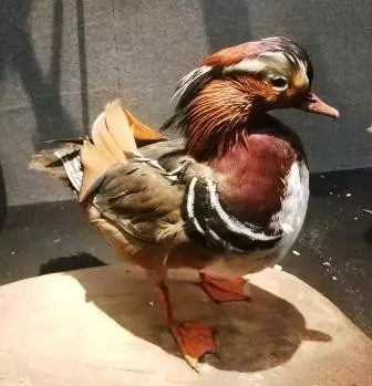 我做鸟类学研究工作之后,对鸳鸯的形态特征和生活习性才有了进一步的认识。发现旧物上无论是印的还是画的鸳鸯图案,与真实的鸳鸯相较都有很多的夸张和变形,甚至将雌鸳鸯画成了雄鸳鸯的翻版。而现实中的鸳鸯,雄鸳鸯的羽色鲜艳华丽,美得不可方物,雌鸳鸯的羽色却低调含蓄,整体呈灰褐色,眼周白色向后拖着一道细长的眉纹,就像江南的美女,婉约而不晃眼。
