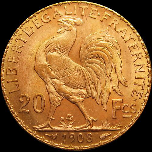 大约在14世纪,居住在这片土地上的人接受了来自敌手的这种嘲讽式的类比,并将其引为自己的象征,而且逐渐附加了“重视荣誉感”一类的褒义色彩。瓦卢瓦和波旁的国王的肖像和钱币上开始出现公鸡,卢浮宫和凡尔赛也有公鸡的雕像,但属于陪衬性质的象征物。