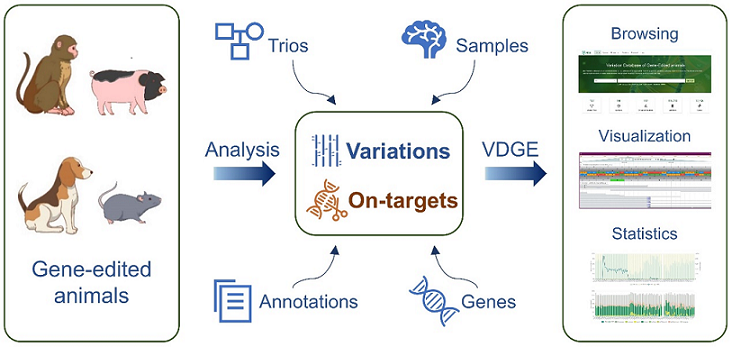 随着基因编辑技术的快速发展,基因编辑动物在生物学和医学研究中的重要性愈发凸显。然而,基因组编辑可能会在非靶点位点引入基因组变异,导致这些动物出现意想不到的功能突变,因此迫切需要系统地收集和整理这些变异,以支持数据挖掘和深入分析。