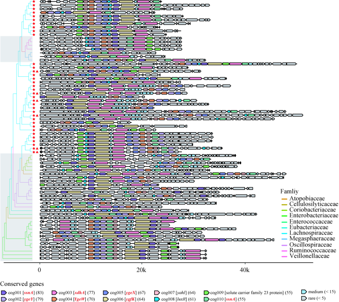 图一、尿酸基因簇的系统发育景观(星号表示来自毛螺菌科细菌)