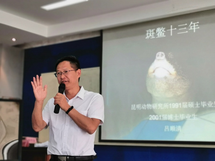 姚永刚会长首先介绍了《校友论坛》举办的目的意义和到场的校友、嘉宾,详细介绍了校友李葆明的情况。校友李葆明的报告首先将大家带入了回忆的漩涡,他深切缅怀了潘清华和施立明两位老先生,对导师和研究所表达了深深的感恩之意,并表示昆明动物研究所永远是他的家,之后分享了自己在研究所求学和工作的难忘经历,声情并茂的讲述让大家感受到了当年求学的不易,和研究所对学生的关心和关怀。随后,李葆明教授作了题为《前额叶皮层功能研究》的学术报告,介绍了前额叶皮层与注意力调控、工作记忆、抑制性调控、行为的规划、社会认知、思维和推理等认知功能关系的研究工作。随后,郑永唐秘书长介绍了校友吕顺清的情况,吕顺清校友以《斑鳖十三年》为题,讲述了其十三年坚守斑鳖?;ど镅а芯康墓适?,十三年来他们的科研团队一直在探索拯救斑鳖的办法,从寻找雌、雄个体到斑鳖月老,从自然繁育到人工授精,吕顺清觉得这是一个“失败”的故事,但借此可以给大家很多启发。随后,他结合自己的经历,分享了自己的经验和教训,鼓励大家在做了选择后一定要有坚持。