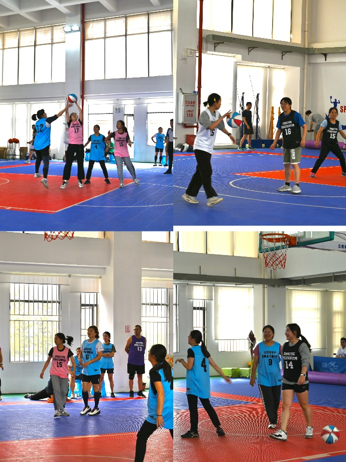 随后展开的女子组3V3比赛中,四支报名队伍两两随机组合进行预赛,两组胜者进行决赛,败者角逐季军。四支队伍都展现出了强劲的拼搏精神,初赛中,由吕雪梅老师与段丽斌老师带领的教师队凭借丰富的比赛经验,迅速展开攻势,利用精准的投篮和默契的配合,频频得分。另一块场上,由陈策实组的学生组成的队伍则展现出年轻人的活力,积极防守并寻找反击机会,努力缩小分差。决赛经过数回合较量后,经验老道,身体过硬的教师队如期获得了比赛的冠军。