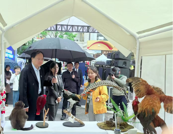活动现场,昆明动物博物馆展示了世界第五种金丝猴——怒江金丝猴标本、具有回声定位能力的啮齿动物——中华猪尾鼠、拥有艳丽长尾羽的鸟类——白腹锦鸡、获得全国标本制作大赛精品奖的动态标本展示——家鸡搏斗标本,拥有绚丽光泽的欢乐女神闪蝶等展品在活动现场吸引了众多观众。现场工作人员向昆明市领导以及现场公众介绍了研究所的部分科研成果和科普工作成效。蝴蝶标本制作互动体验获得了众多中小学生的青睐。