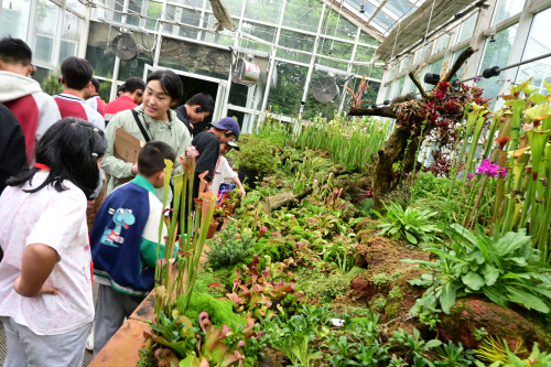在活动中,昆明动物博物馆、昆明植物园讲解员带领同学们参观了动物标本展览、扶荔宫、种子博物馆等,通过生动有趣的讲解,为同学们揭开了动物和植物世界的神秘面纱。同学们近距离观察了珍稀动物标本和植物标本,既学习了丰富多彩而神奇的生物知识,又了解了动植物的生态习性和及生物?;さ囊庖濉;疃诩洌茄靶酥赂甙?,积极提问,讲解员们耐心解答,现场气氛热烈。通过亲身体验和沉浸式学习,让同学们不仅增长了知识,还激发了对科学研究的浓厚兴趣。希望通过科普教育帮助石屏县牛街镇更多的学生种下热爱科学的种子,激励他们努力学习,为未来探索更多未知领域定基础。